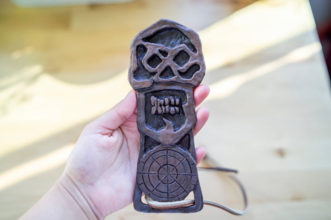 Hecha y pintada a mano con un acabado imitación al bronze.